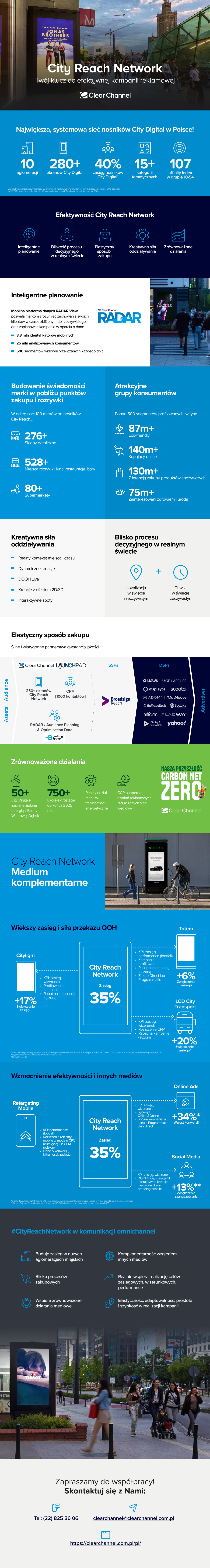 Clear Channel Poland w ramach swojej oferty umożliwia dostęp do City Reach Network – największej w Polsce sieci nośników City Digital Out of Home.