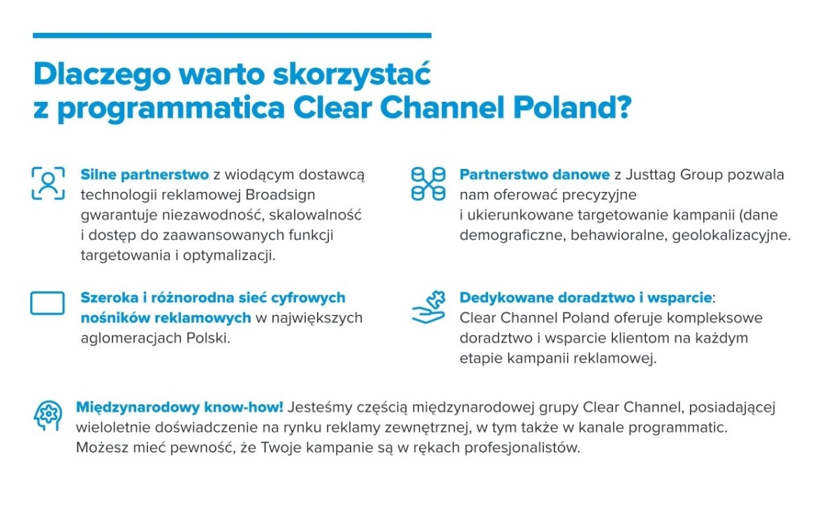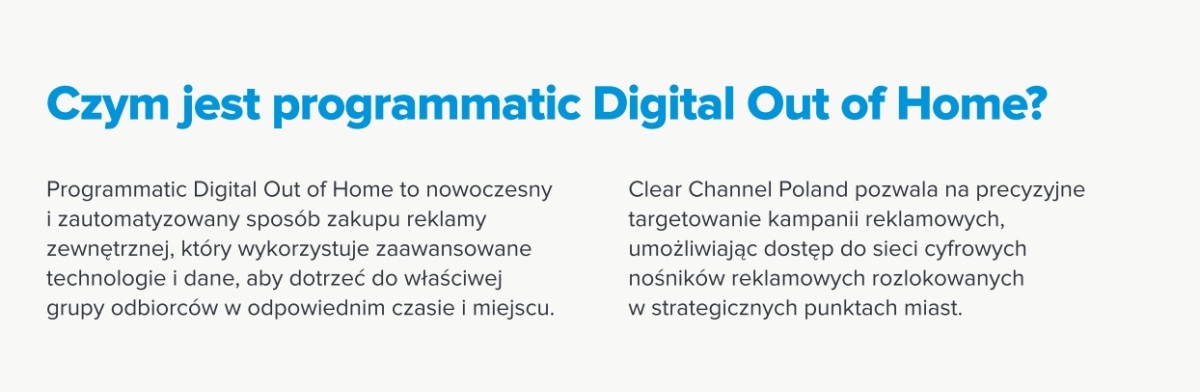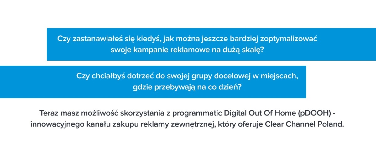 Dzięki digitalizacji nośników reklamy OOH, połączonej z rozwojem technologii oraz wielowymiarowych analiz danych, marki zyskują coraz bardziej efektywny sposób dotarcia bezpośrednio do klientów. Automatyzacja, to naturalny krok na drodze rozwoju dynamicznie rozwijającego się medium jakim jest Digital Out Of Home. Programmatic zwiększa potencjał tego medium, optymalizując precyzję targetowania, dając możliwość elastycznego zarządzania kampanią i trzymania kontroli nad jej realizacją, co dla marek jest kluczowym elementem na drodze do dalszego rozszerzenia strategii omnichannel.
