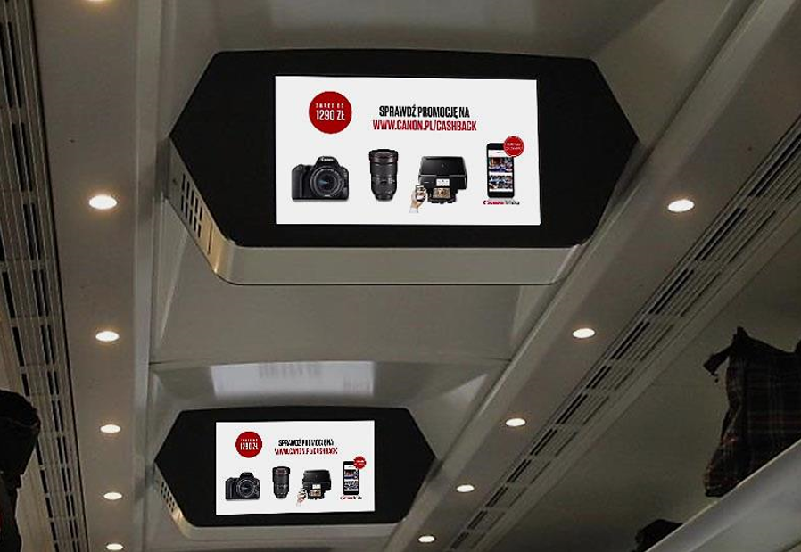 - wykorzystaniem nośników reklamowych wewnątrz pojazdów komunikacji publicznej o największym zasięgu terytorialnym – nawet na skalę międzynarodową,
