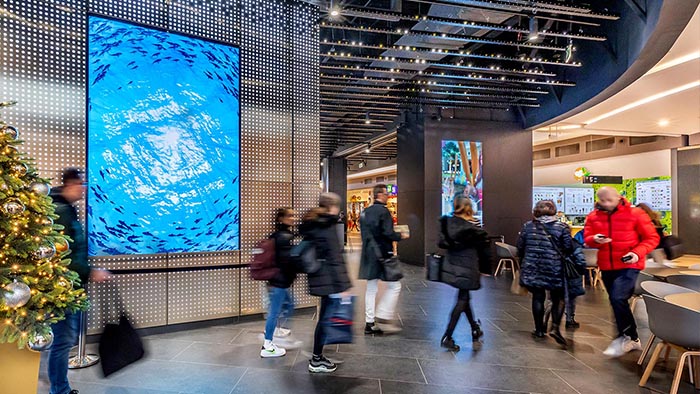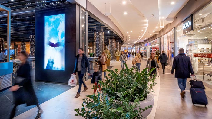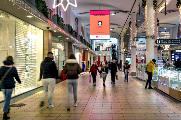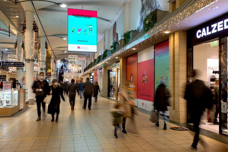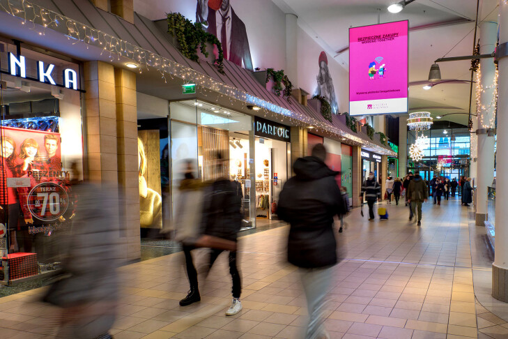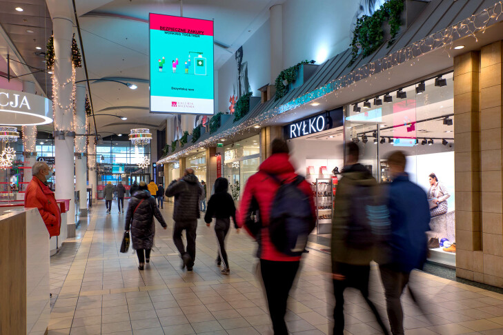 - Gwarantuje długi kontakt z reklamą - zlokalizowany w holu głównym centrum handlowego